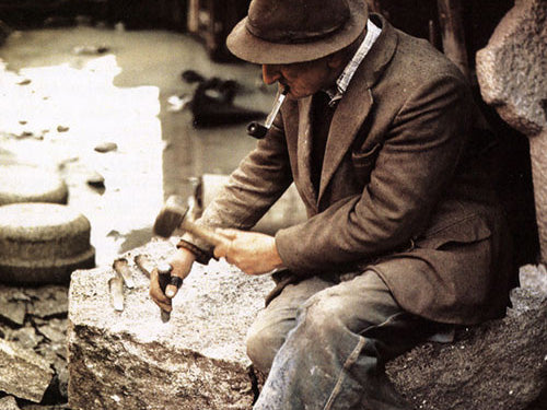 There is a long tradition of working with stone in Ireland. This film documents the lifestyle and work of quarrymen and stonecutters at Ticknock, Co. Dublin, and Ballyknockan, Co. Wicklow. Skilled masons and carvers cut the famous Irish granite for the statues and fa9ade of the Bank of Ireland, College Green in the heart of Dublin City. It includes the laying of cobblestones in Trinity College, Dublin, and the carving of a decorative Georgian-style mantelpiece. This film captures some of the last quarrymen working the granite quarries which have sadly gone into decline.
