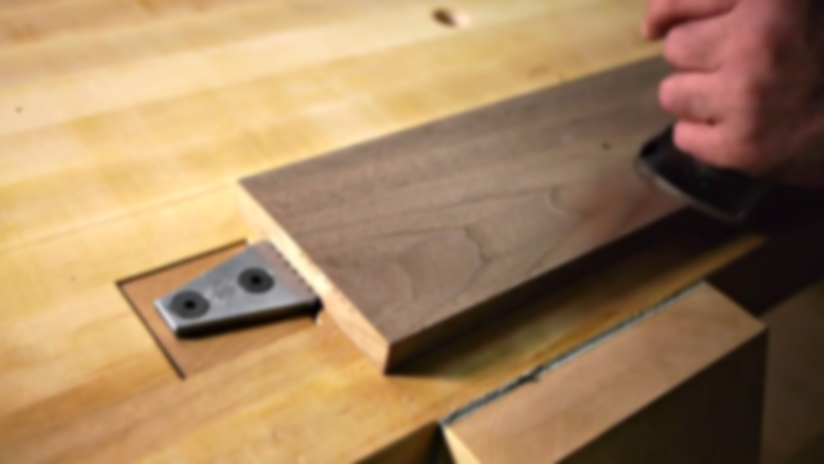 Although not required, lightly inlaying the stop into the end grain of the stock further helps reduce rotational forces. With a well-fit stock in your benchtop, adjusting the height of the stop is easy with mallet taps.
