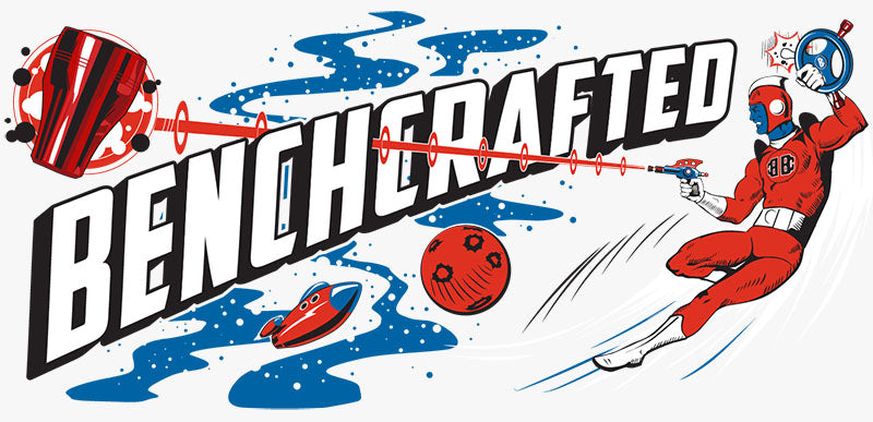 Back in the 21st century galactic forest woodworker Ruck Bodger found one of his Glide knobs had gone missing. Where had it vanished to? Some say it was a rift in the time-space continuum that took the knob, others say it fell into a black dog hole, still some others say it was chopped off in a fit of anger by renegade anti-visers. All we know is, Ruck needed a replacement in the future now present! Plowing his way through various nebula, Ruck encountered a mesmerizing array of objects made of luminous red matter floating in a cosmic river of toxic blue epoxy. Upon closer examination he discovered the objects were the exact shape of his missing Benchcrafted Glide knob! Employing his shooting skills, he whipped out his Ray-Fleck gun and taking aim he tractor-beamed the glimmering objects into his possession. Traversing the galaxy back to his cosmic woodlot, Ruck was able to return to the world of effortless workholding, his Benchcrafted Glide and Tail Vise now outfitted with knobs of red matter.