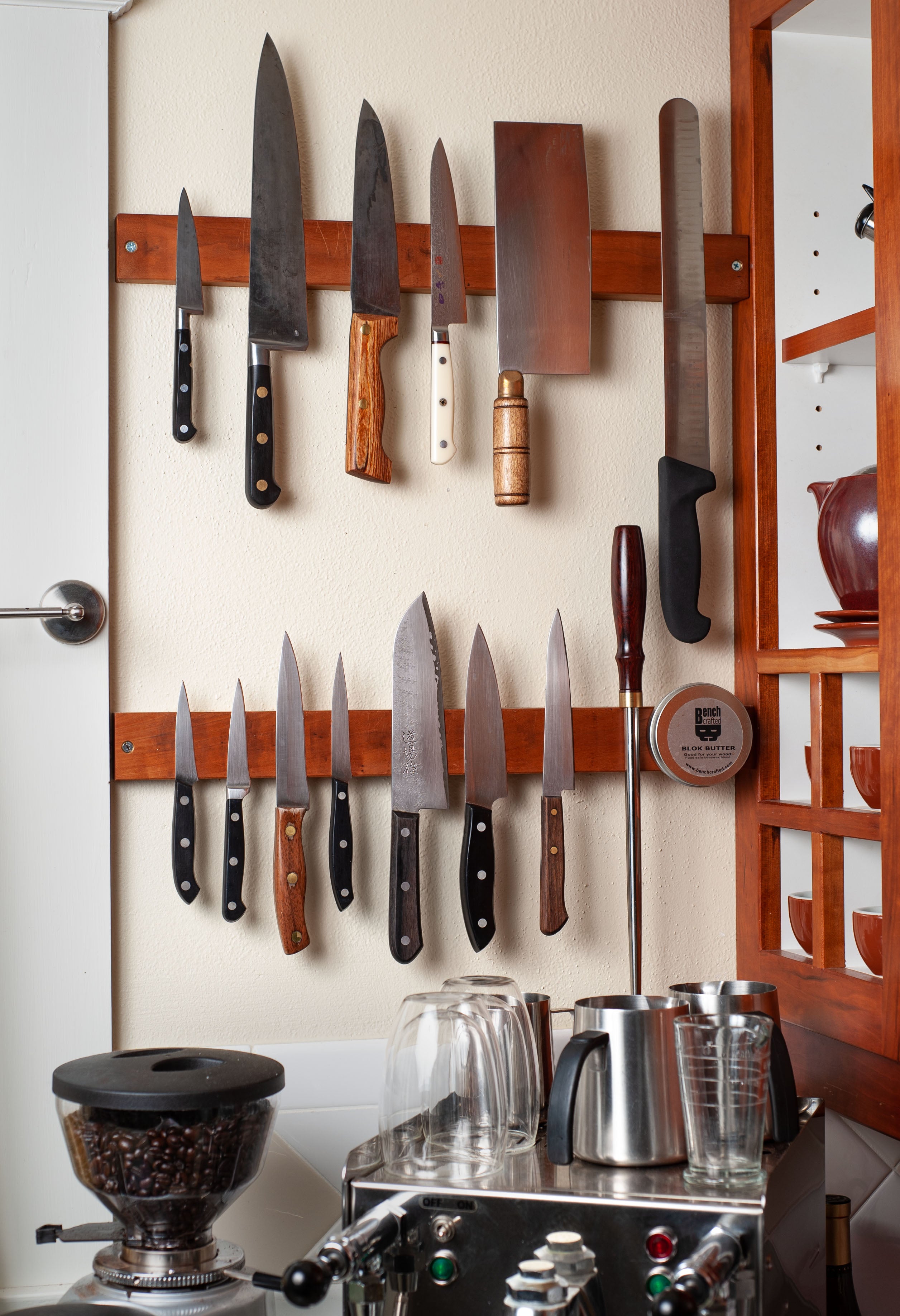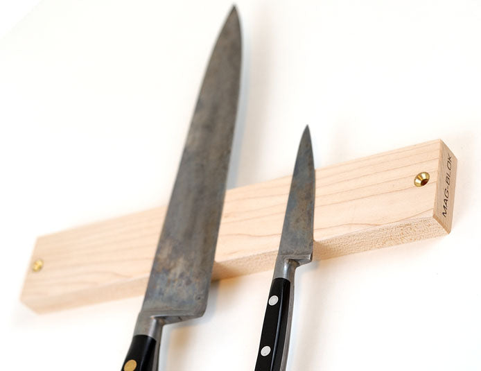 Because the Mag-Blok is all wood, unlike typical magnetic holders that rely on steel rails, the Mag-Blok can't ding or nick your high quality blade steel. Your knives will stay sharp longer with the Mag-Blok because wood is edge friendly.