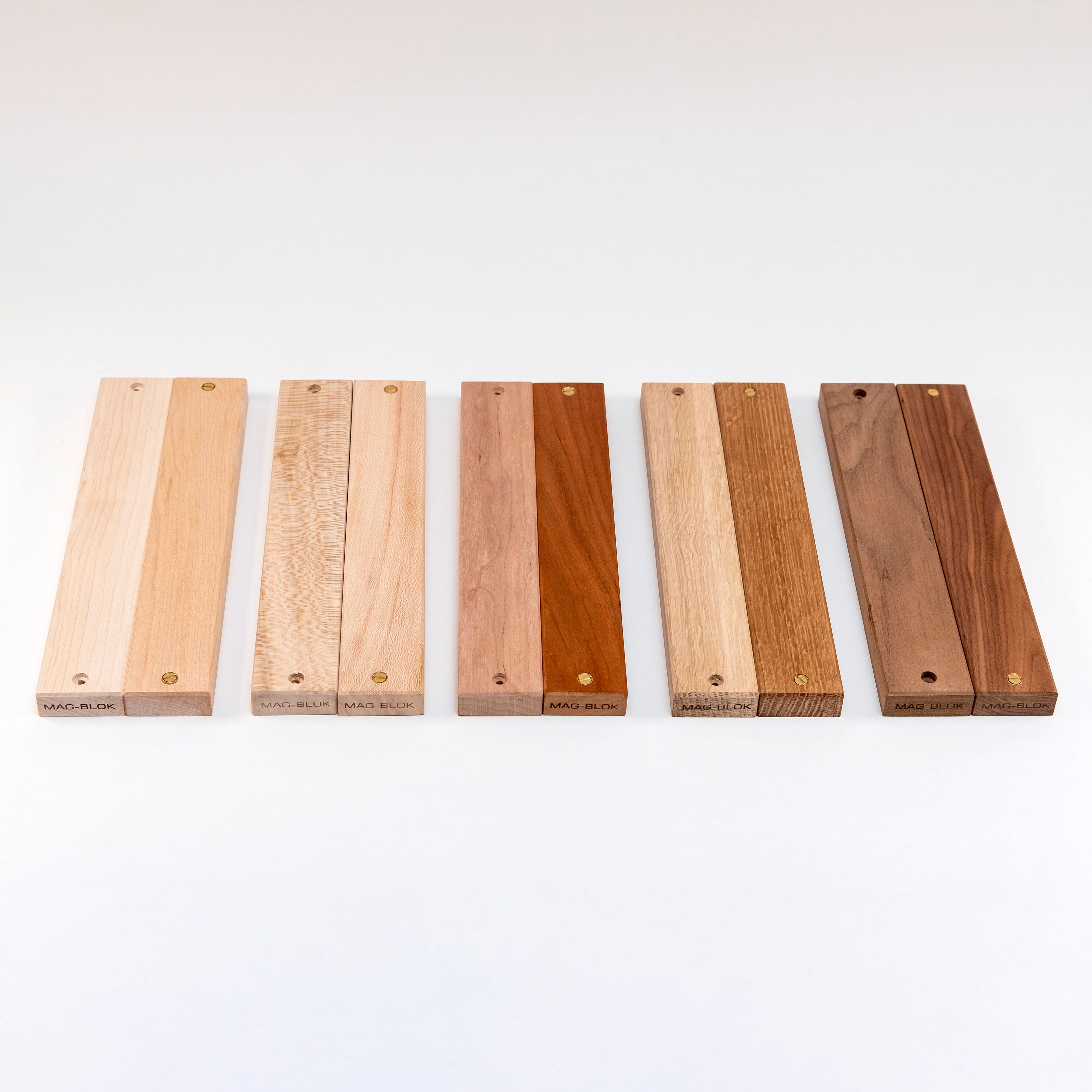 Mag-Bloks are shown here with no finish on the left and Blok Butter applied on the right of each pair.